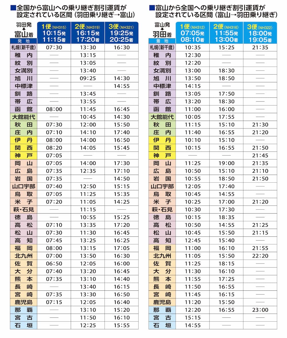 富山きときと空港から東京・羽田空港を経由して、富山から全国各地へ、便利でお得な乗継旅割をぜひご利用ください!